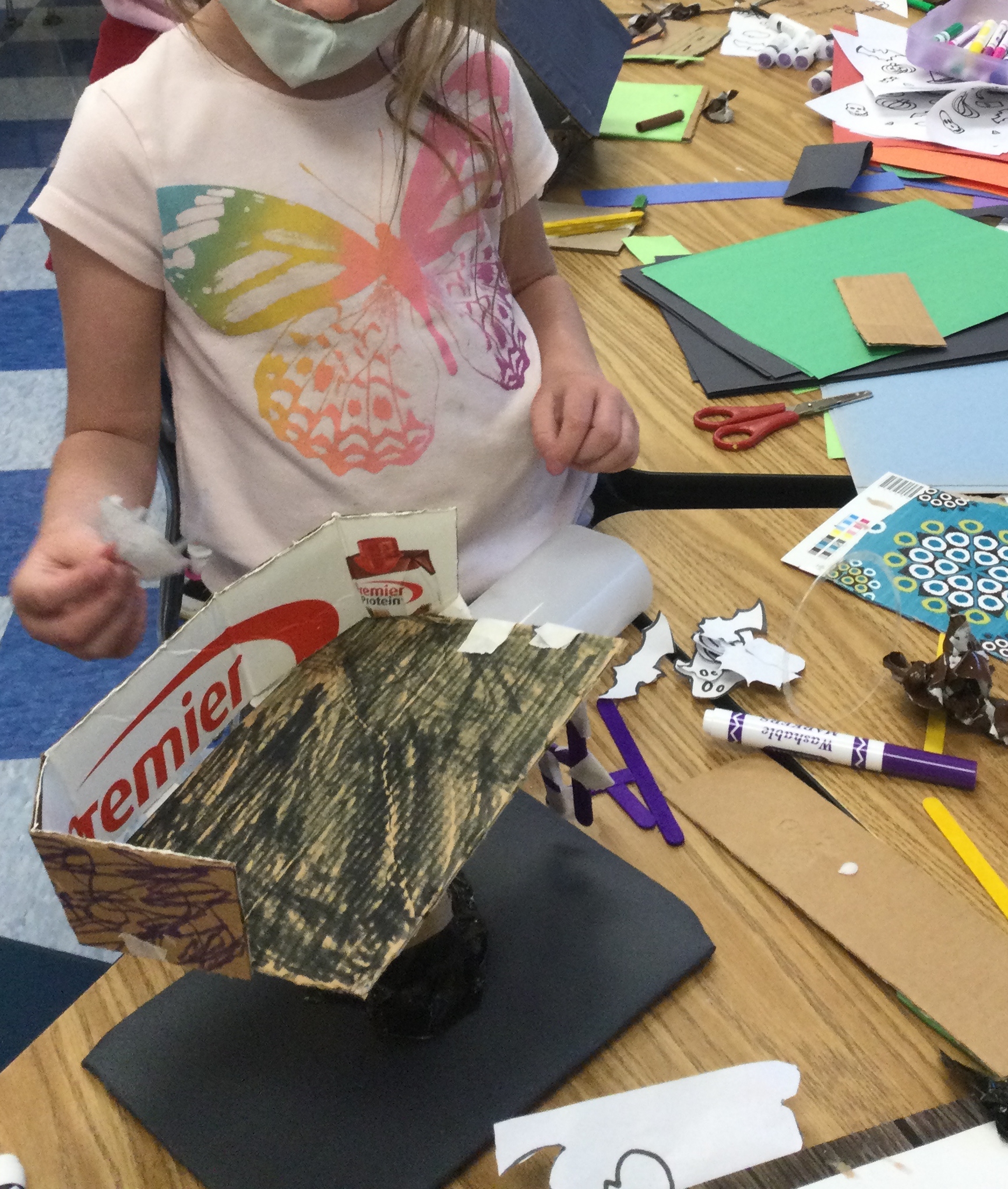 29 Oct 2021 Halloween Week with the Comets by AlanPedersen | posted in: Uncategorized | 0 2nd and 3rd graders spent the rainy week making haunted houses, witches’ hats, monster slime, and Halloween room decorations.