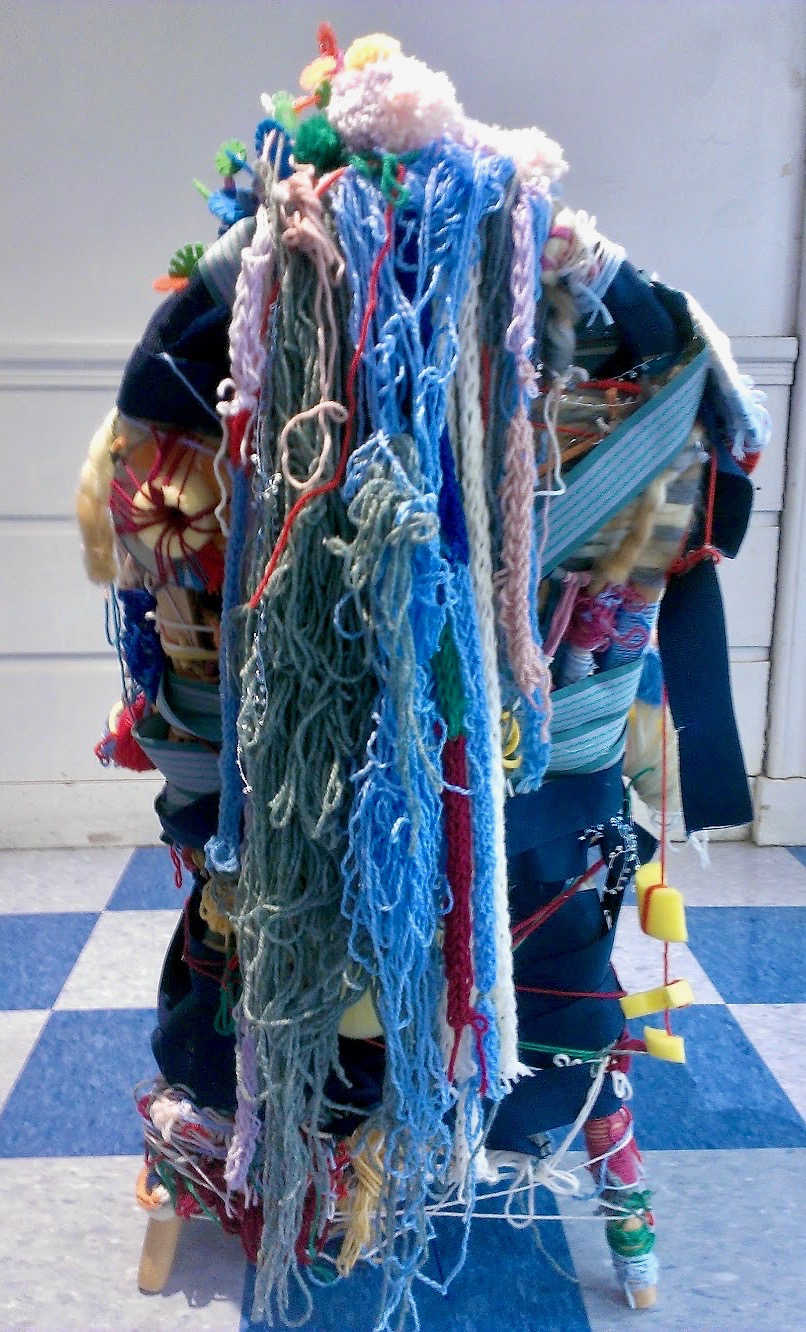 “Monster” is a program-wide (K-5th grade), community-based art project conceived and led by Robin, and co-lead by Monica and Imge, with special assistance by Brandon. Students employed American fiber artist Judith Scott’s (1943-2005) mindfulness centered rhythmic weaving technique to create a large-scale sculpture. There was diverse optional involvement in the project as some students made pom-poms and finger-knitted, while others wrapped CDs and pool noodles, or designed graphic signs. Children reflected on the broad cultural history of monsters including the sea monster Kraken, Griffin, and Godzilla to reflect upon the collective conscious concept of the “other.”
